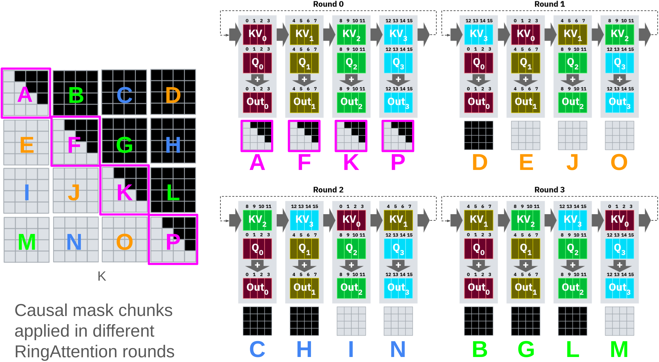 看完图片,相信读者已经可以理解本机制为什么叫 Ring Attention 了。